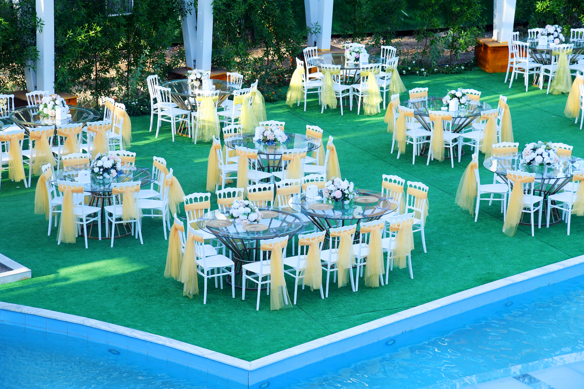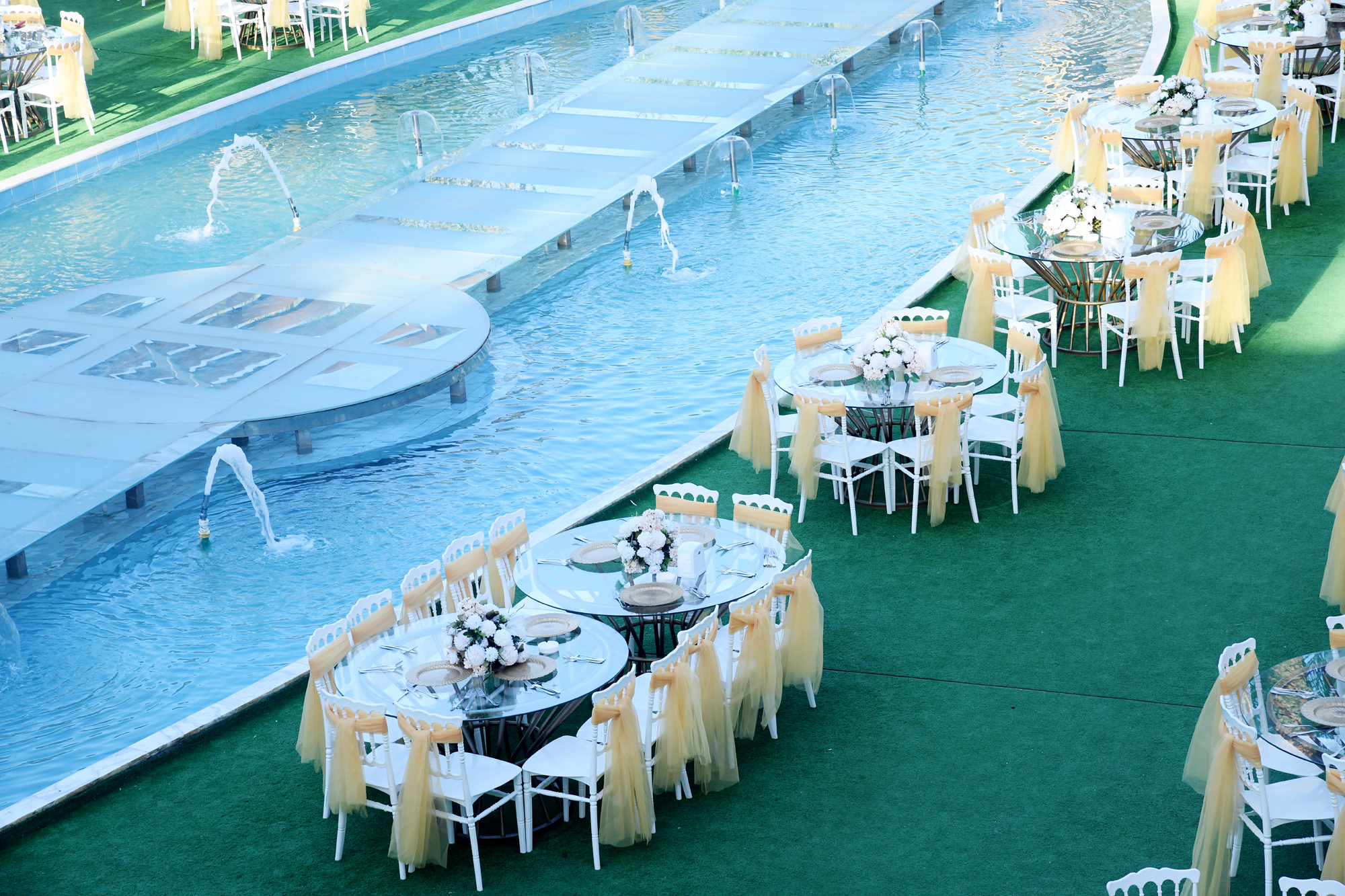 تتضمن تزيين جميع الطاولات بالورد